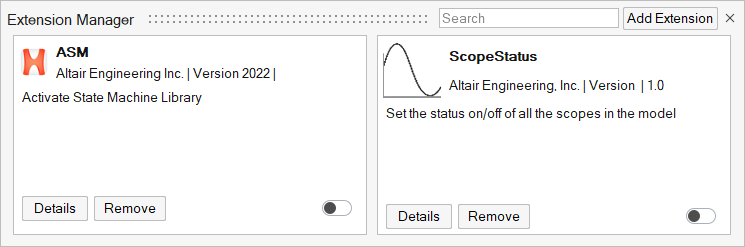 After adding an extension to the Extension Manager, you must install it to enable its use.