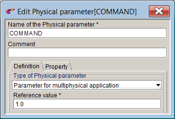 - Select the input (geometric I/O parameters) for the component: COMMAND