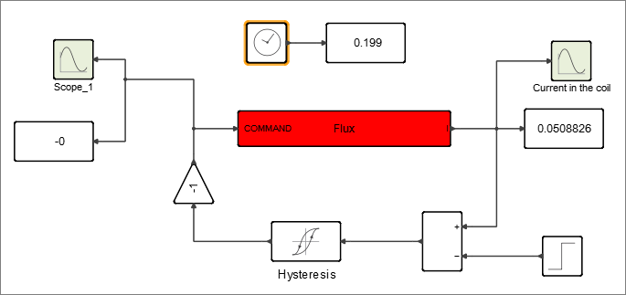 Create a Twin Activate model to regulate by hysteresis the current in the coil that feeds the Flux model of the plunger.