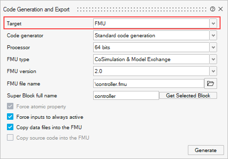 Export a super block from the controller model into the FMU.