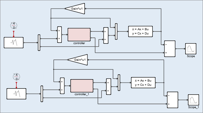 block controller by examining the ContStateSpace and MatrixGain blocks
