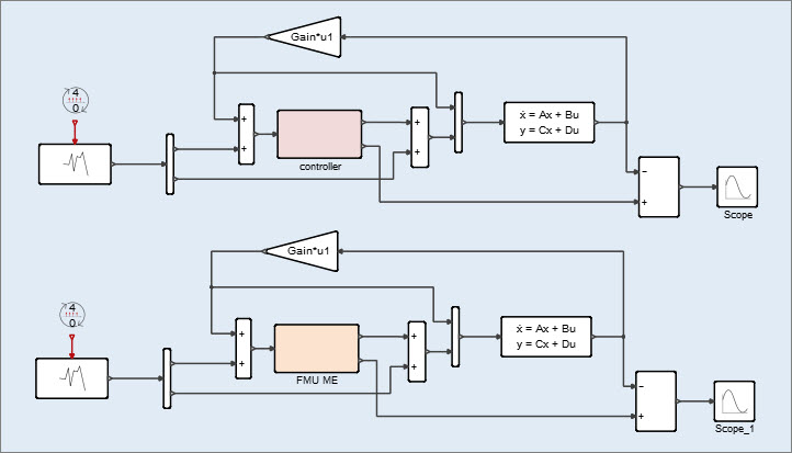 Import the FMU into a controller model with the Co-Simulation option.