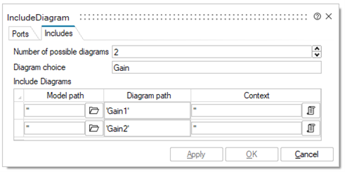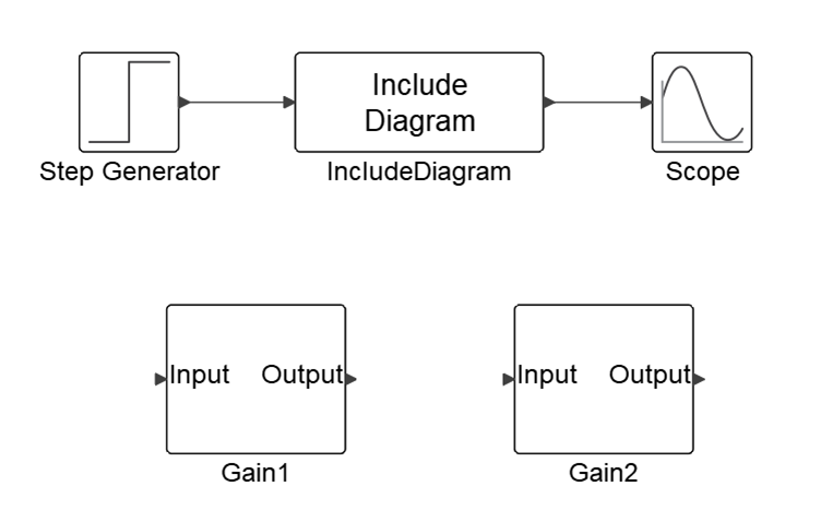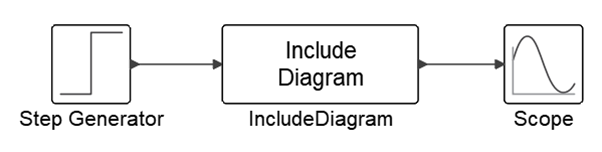 The model in this tutorial has an Include block. You will use the GUI to select the gain that will multiply the input parameter, that is, a Step signal.