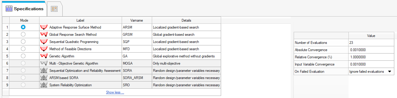 Select the Adaptive Response Surface Method as the