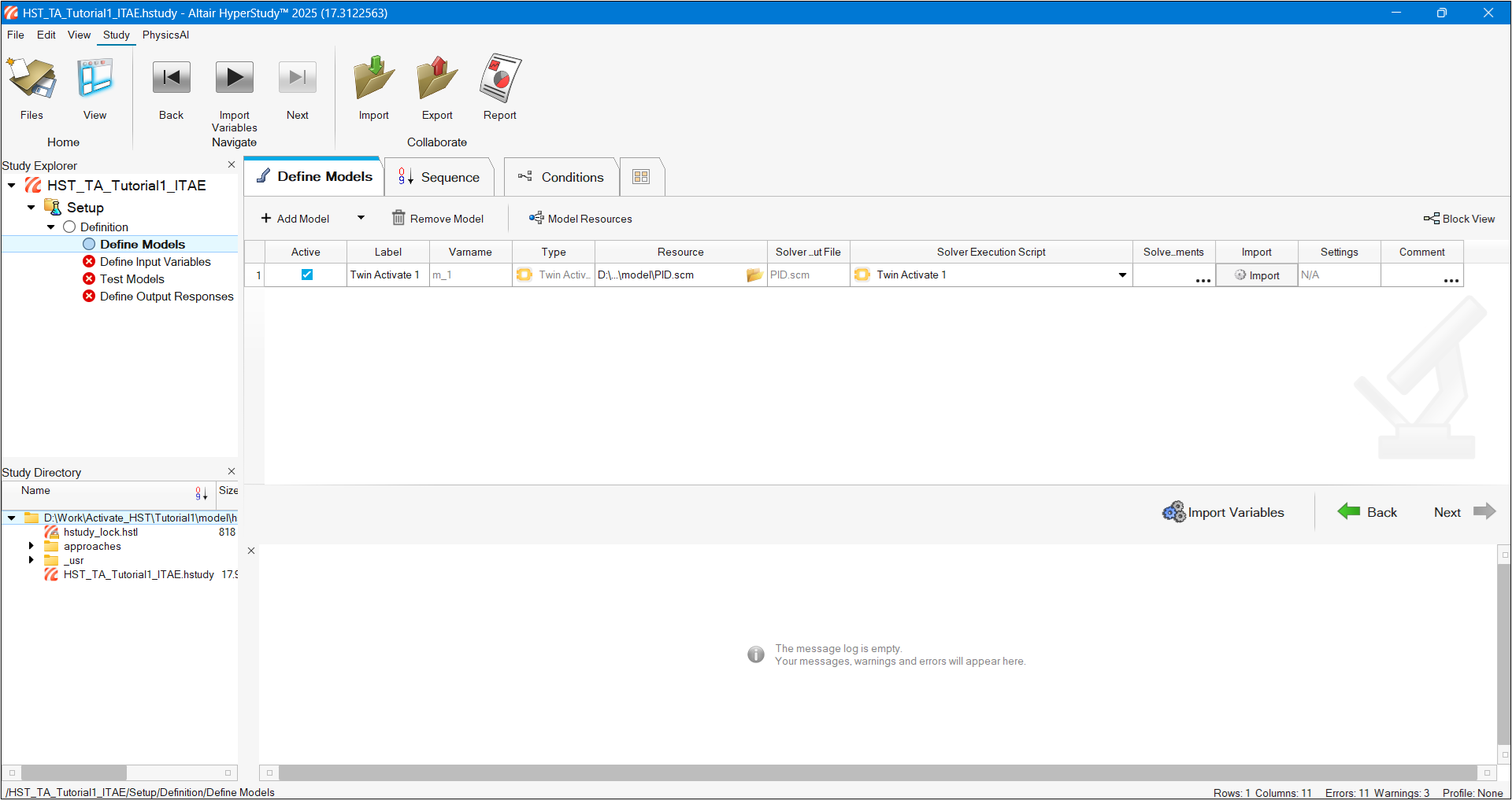 The path can be defined in Edit > Register Solver Script.Figure 6. Twin Activate Model Added in HyperStudy