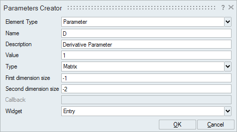 For each parameter, click . In the Parameters Creator dialog, enter the
