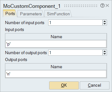 Define the ports, parameters and simulation function for a MoCustomComponent block.
