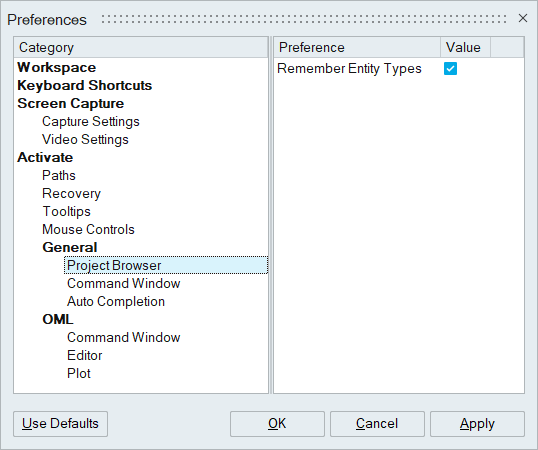 To retain your display selections, from the dialog, select Remember Entity Types.
