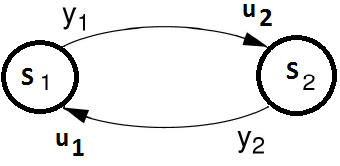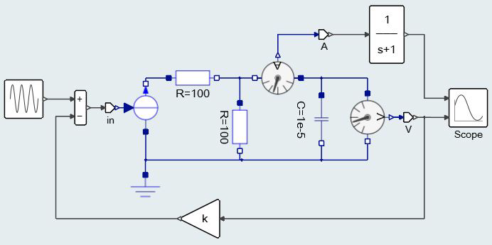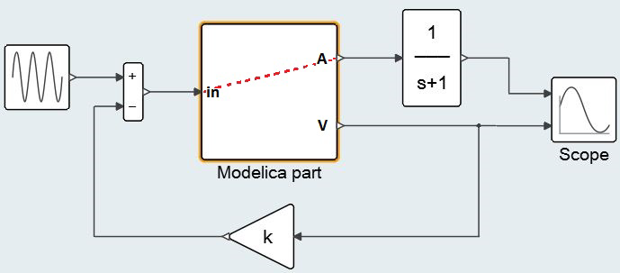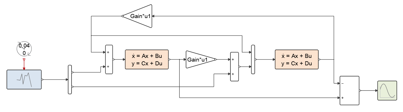 A way to deal with this situation, which was the way Twin Activate imported Modelica parts, is to simply project the matrix of dependencies into a vector. This conservative approach properly assigns dependencies in Twin Activate but "loses" information along the line. This might lead in particular to detection of algebraic loops by the Twin Activate compiler that are not true algebraic loops (artificial algebraic loops). Even though there are ways to break algebraic loops in a Twin Activate model, it was decided to detect artificial algebraic loops and treat them properly. A very simple example that illustrates the problem is shown in Figure 10.