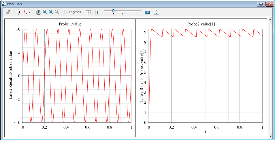 The continuous-time mode is used to compute the values of all continuous-time variables between events by numerically solving ordinary differential and algebraic equations. All discrete-time variables are fixed during this phase and the corresponding discrete-time equations are not evaluated.