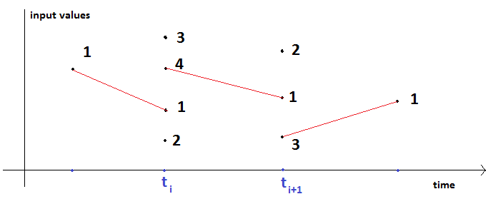 Twin Activate is a hybrid simulation tool which means it can simulate a model with continuous-time and discrete-time parts. The discrete-time part is activated by discrete-time events and the continuous-time part of the model is integrated by the numerical solvers of Twin Activate. Discrete-time events cause discontinuities in signals. As a result, signals in a hybrid model may be piece-wise continuous. Since several discrete-time events may happen at the same time, a signal may have several values at the same time instants, as shown in Figure 23.