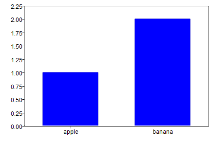 bar({'apple', 'banana'}, [1 2]);Show the bar values over each bar:Figure 4. Show the bar values