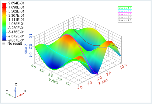 [sh lh th]=fanplot(x, y, z,'curves',[1:2:10],'text',{'line x = 1.0','line x = 3.0', 'line x = 5.0', 'line x = 7.0','line x = 9.0'});