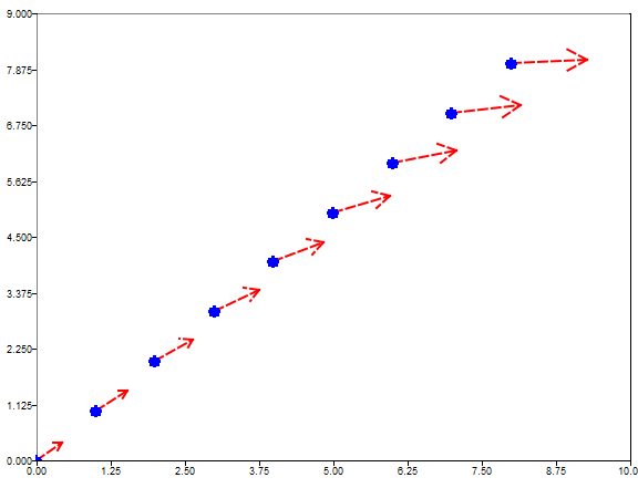 qh = quiver(0:8, 0:8, u,v);