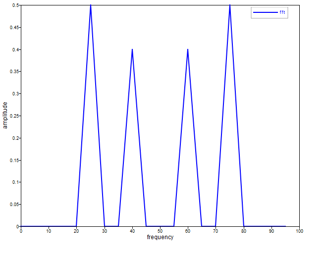 The frequency spacing is 5 Hz, so both components fall exactly on one of the frequency vector values.