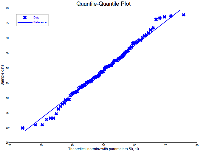 qqplot(data, 'norm', 50, 10);