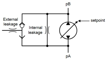 The component VariableFlowPump constitutes a model of a flow source for closed circuit applications, in which the delivery is calculated from the given nominal flow, the input signal, the leakage, and the suction pressure.