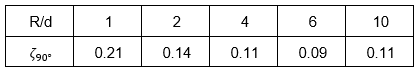 For bends without marked radius of curvature R, Zeta can be taken out of the following table and/or can be computed by interpolation: