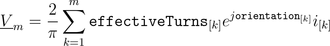 In this equation each contribution of a winding magnetomotive force on the total complex magnetic potential difference is aligned with the respective orientation of the winding.