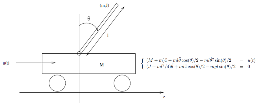 古典的な倒立振子を台車に載せた場合の問題を考えます。