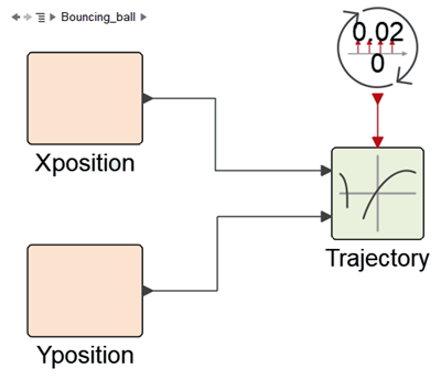注: このモデルは、Demo Browserにあります。Activate > Activate Introduction > Activate Basics > Bouncing Balls > Bouncing_ball.scm