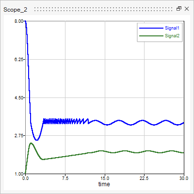 スコープウィンドウが開き、選択したスコープブロックのプロット結果が表示されます。