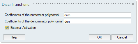 DiscrTransFuncブロックをダブルクリックし、次のようにパラメーターに値を入力します。