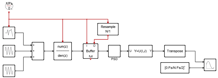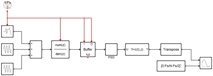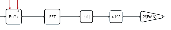 高速フーリエ変換とパワースペクトル密度を計算するために、モデルにブロックを定義します。