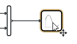 ヒント: ブロックを自動的に接続するには、Shiftキーを押しながら各ブロックをクリックします。1つ目のブロックで次に使用可能な出力ポートが、2つ目のブロックで次に使用可能な入力ポートに接続されます。ポートを選択解除するには、Escキーを押します。 -