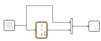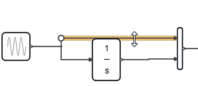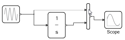 Integralブロックを選択します。マウスをクリックしたままわずかに上方にドラッグして、IntegralブロックとMuxブロック間の曲線状のリンクを一直線にします。