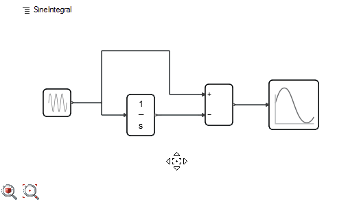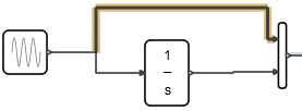 複数のブロックとリンクを同時に削除するには、ダイアグラムの中で目的のセクションをクロス選択してから、上記の操作によってそのセクションを削除および復元します。ダイアグラムの左上隅をクリックして右下にドラッグし、ダイアグラムの中でSineWaveGeneratorブロックとIntegralブロックが含まれた領域を選択します。