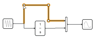 Altキーを押しながら、SineWaveGeneratorブロックとIntegralブロックの間のリンクの屈曲部をクリックします。