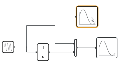 別の方法でブロックを複製するには、Scopeブロックを選択して、Ctrlキーを押しながら、選択したScopeブロックをダイアグラム内の空白領域にドラッグしてからマウスを放し、Ctrlキーを放します。