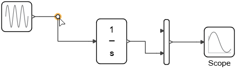 SineWaveGeneratorブロックの出力ポートにマウスカーソルを合わせ、カーソルが手の形に変わったらクリックします。