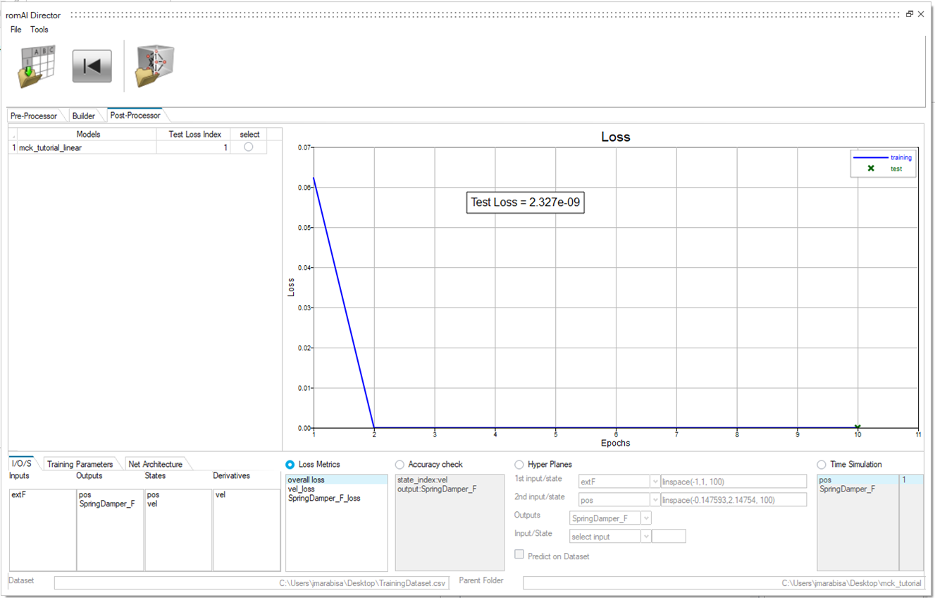 Post-Processorタブでは、学習したROM を簡単に視覚化し、評価することができます。モデル学習後に自動的に開きます。