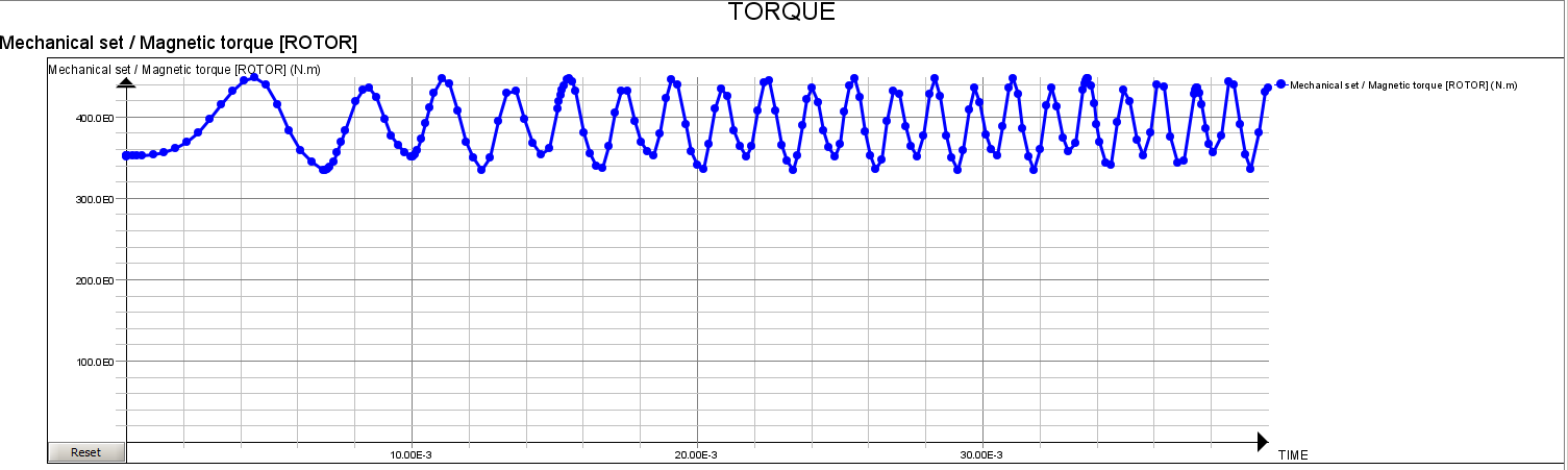 このIPMモーターは三相正弦電流によって駆動され、キネマティクスタイプのマルチフィジックスポジションで回転します。シミュレートされたモーター性能は、トルク、相電流、速度、およびローター位置の計算に適用されます。