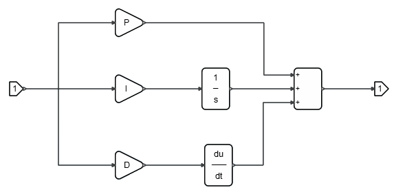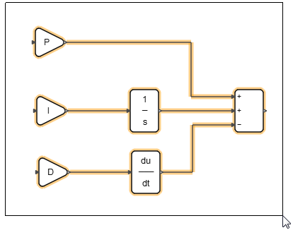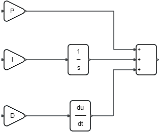 注: パラメーターに、値であるP、I、Dを割り当てることにより、その値が本チュートリアルの後の部分で定義するコンテキスト変数を表すことを示しています。ブロックは次の図のようになります: