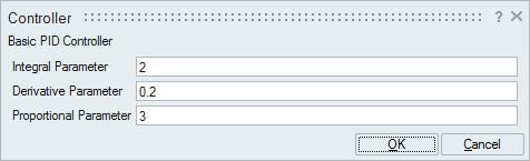PIDコントローラーは、基本的な代数ブロックと積分ブロックから構成されるスーパーブロックとして組み込みます。PIDコントローラーの比例項、積分項、微分項の係数は、OMLコマンドで編集可能なコンテキスト変数として定義されます。