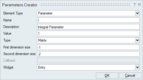 をクリックします。表示されたパラメーター作成ダイアログで、次の図に示す情報を入力してOKをクリックします。