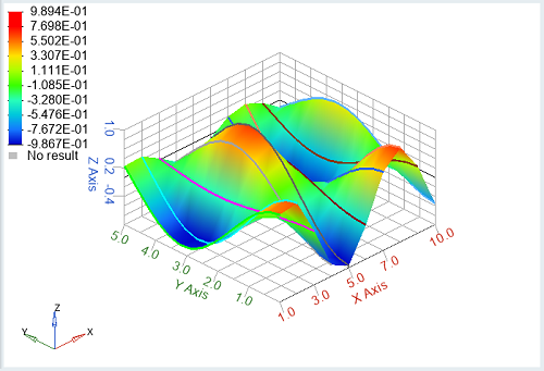 [sh lh th]=fanplot(x, y, z,'curves',[1:2:10],'text',{'line x = 1.0','line x = 3.0', 'line x = 5.0', 'line x = 7.0','line x = 9.0'});