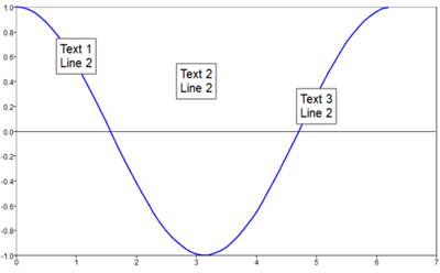 text([1 3 5],[0.6 0.4 0.2],{{'Text 1', 'Line 2'}, {'Text 2','Line 2'}, {'Text 3','Line 2'}});