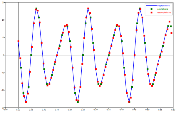legend('original curve', 'original data', 'resampled data');