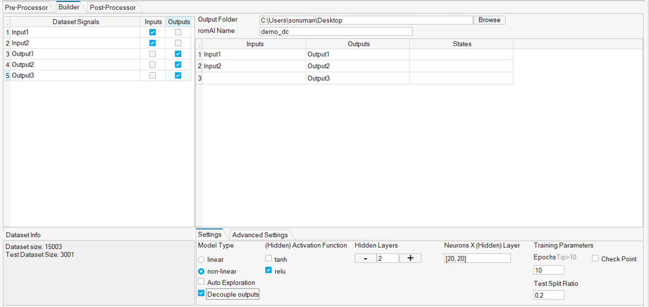 As shown in image above, if the model is trained with Deouple outputs selected, then three models are generated and are stored in a folder named with following syntax: <romAI name>_<output_name>_decoupled<integer>.