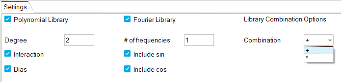 - In romAI Director, you have the option to use the Polynomial and Fourier feature libraries or a combination of those. You may concatenate (+) or tensor (*) multiple libraries together for more flexibility.