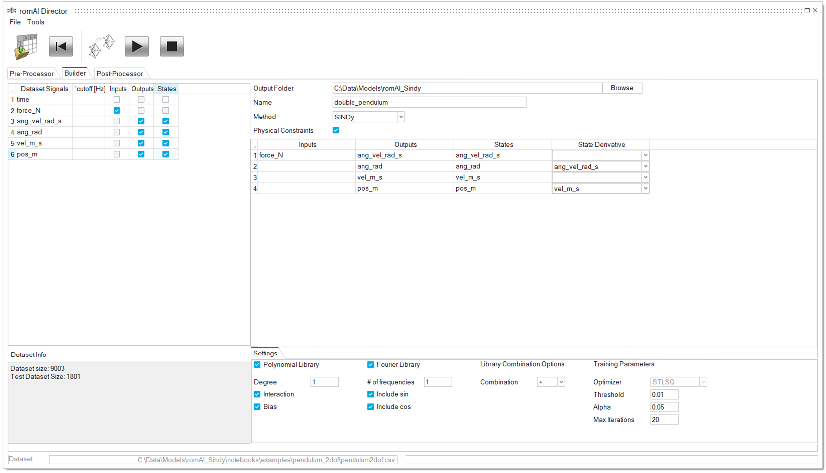 Given the dataset, the romAI model can be built easily through the Builder tab.