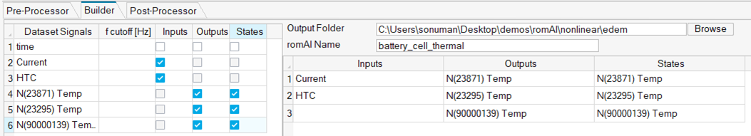 To train the romAI model, time histories of inputs, outputs, and state variables are needed.