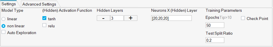 - Neurons X (Hidden) Layer: [20,20,20]