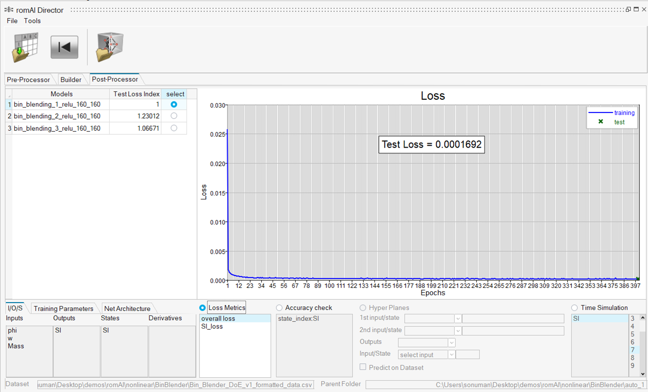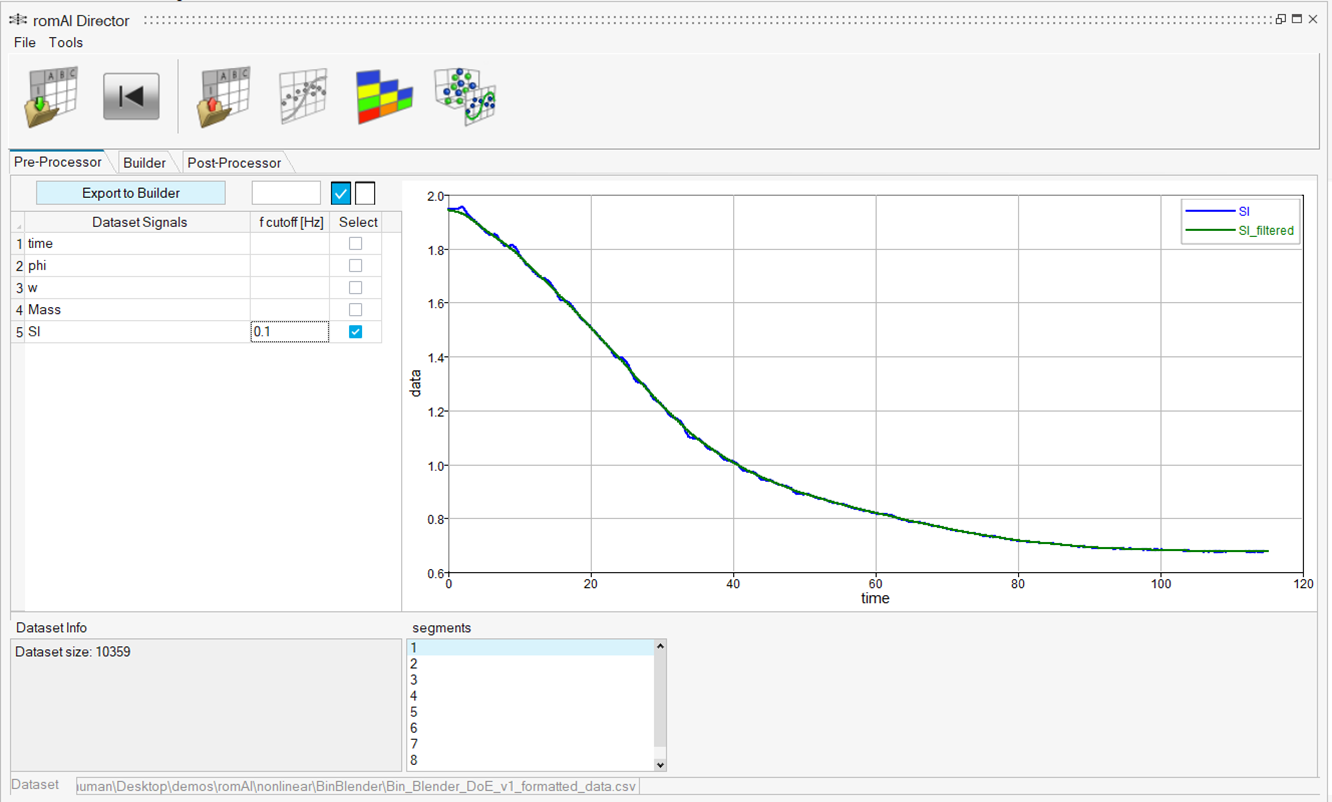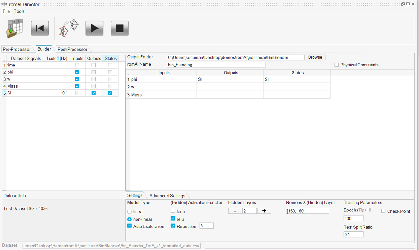 - Load the Bin_Blender_DoE_v1_formatted_data.csv file in the Pre-Processor.
