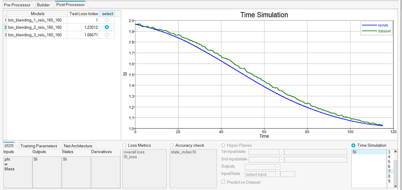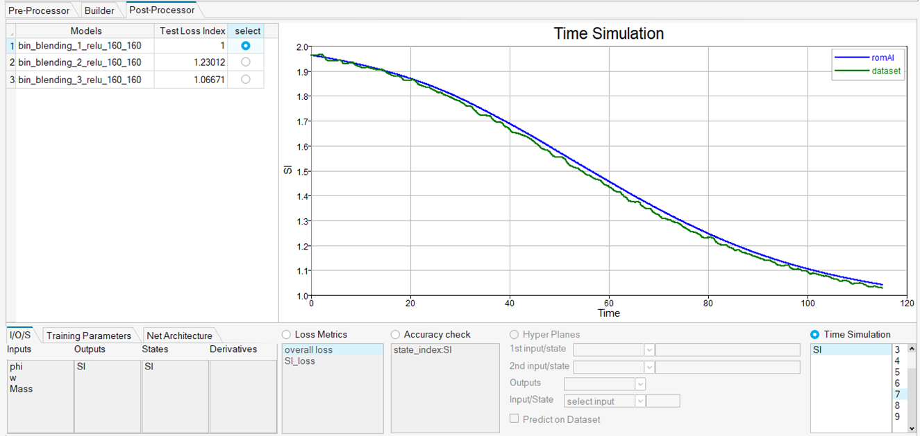 - Click the Time Simulation radio button and use the seventh segment and compare the plot with other two trained model.