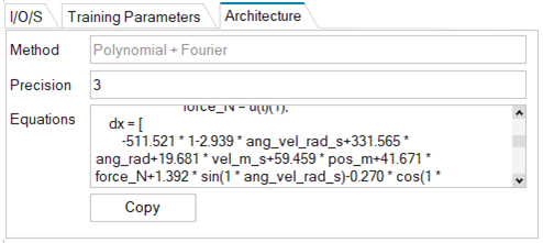 When you have created a model using the SINDy method, you automatically get access to the approximate system equation. You can copy the formula and reuse it from the Architecture tab.